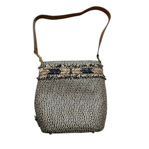 Eric Jarvis Tortola Fringe Trim Raffia Straw Small Bucket Bag Purse Convertible