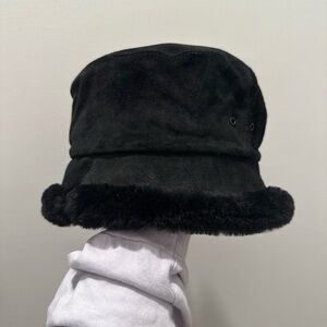 • Soft black faux suede crown with plush faux fur brim