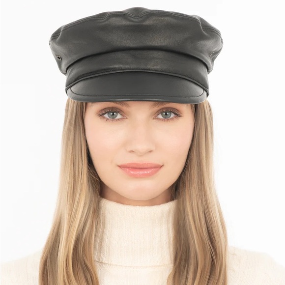 Eric Javits Black Leather Night Porter Cap