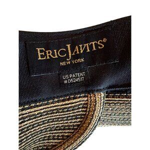Eric Javits Black & Natural Straw Visor Sun Hat Adjustable Band Womens