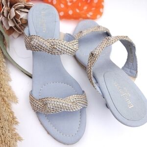 Eric Javits Blue Silver Gold Kitten Heels sz 9m