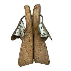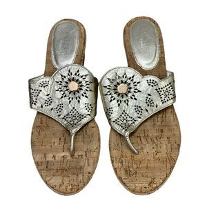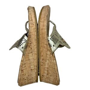 Eric Javits Gold Leather with Cutouts Cork Wedge Thong Sandals 10 NARROW