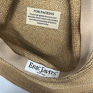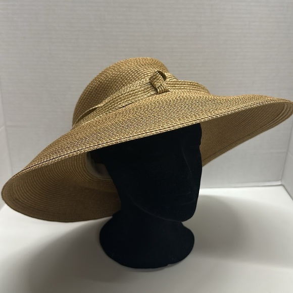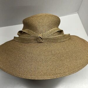 Eric Javits Hat Floppy Sun Shade Classic Straw Tan Brown Bow Ribbon Round
