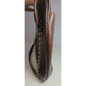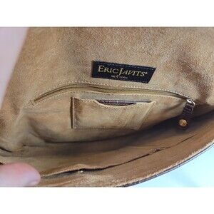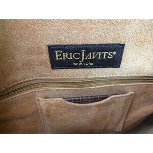 The Eric Javits Laptop Tote is a stylish and functional handbag designed for women on the go. It has that amazing leather smell. Crafted from brown crocodile-embossed leather with gold hardware accents, this tote features a suede interior lining and a spacious compartment perfect for storing a laptop or other essentials. The brown leather handle/strap adds a touch of sophistication, making this bag a versatile accessory that can elevate any outfit. With its sleek design and high-quality materials, the Eric Javits Laptop Tote is a must-have for fashion-forward women looking for a chic and practical everyday carry.