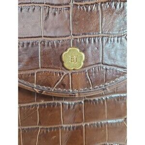 Eric Javits Laptop Tote Brown Croc Embossed Leather Gold Hardware Suede Interior