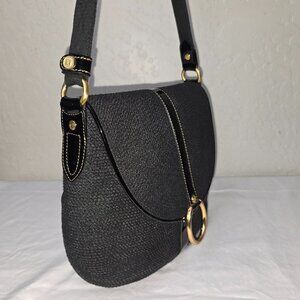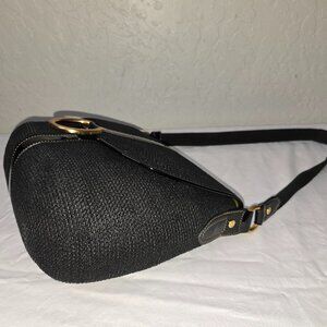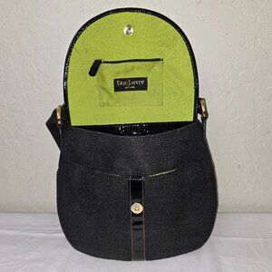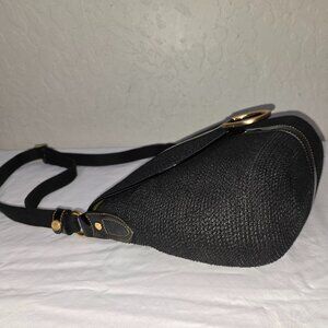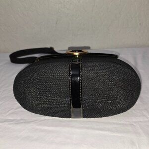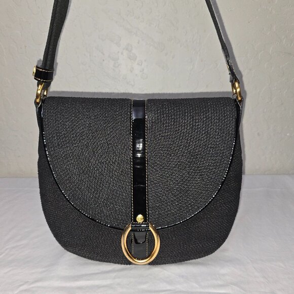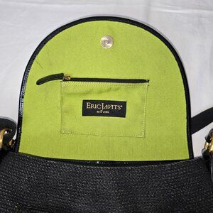 Eric Javits Medium Black Squishee Straw And Patent Leather Flap Crossbody Bag