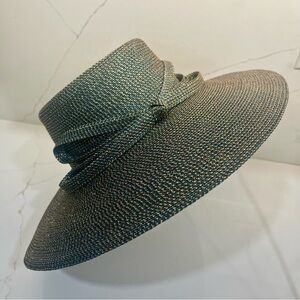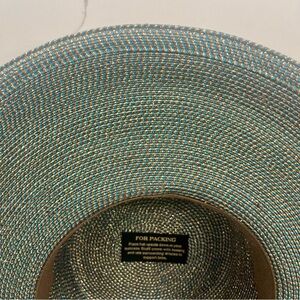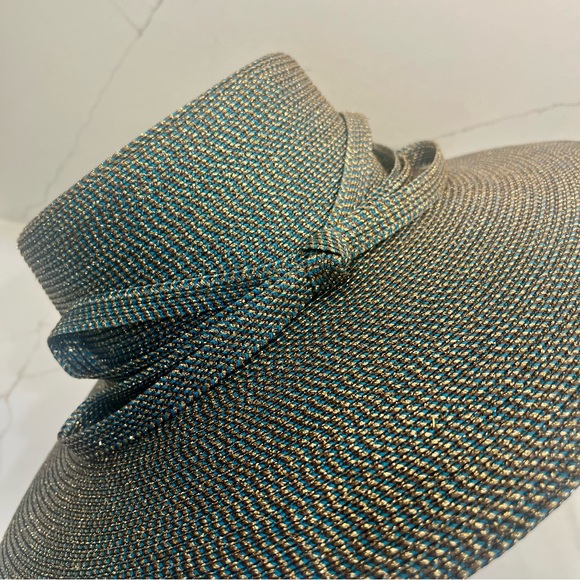 Eric Javits Metallic Woven Wide Rim Hat - Teal and Gold NWOT
