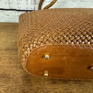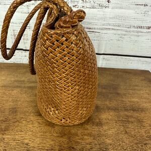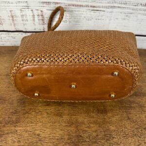 Eric Javits New York Tobacco Brown Woven Straw Leather Shoulder Handbag Purse