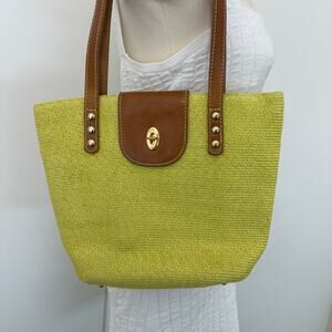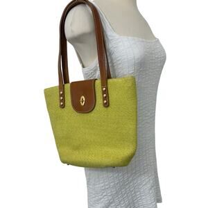 Eric Javits Squishee Raffia Woven Straw Tote Shoulder Bag Green Chartreuse