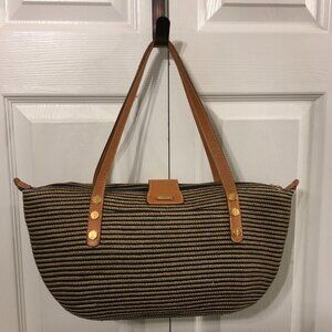 Eric Javits Squishee Woven Straw Shoulder Bag Leather Trim
