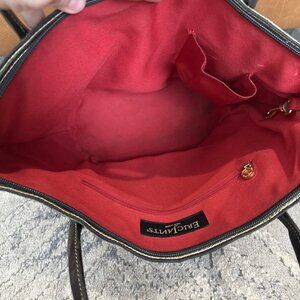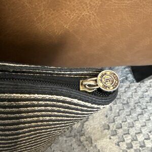Eric Javits Stripe Black & Beige Straw Leather Tote Handbag