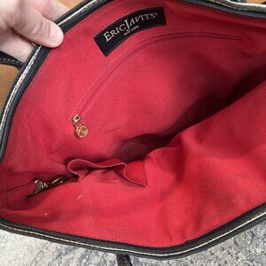 Eric Javits Stripe Black & Beige Straw Leather Tote Handbag. Condition is Pre-owned - Good. Shipped with USPS Ground Advantage.