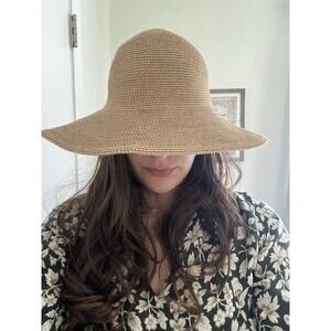Eric Javits Tan Natural Straw Rollable Squishee Sun Hat