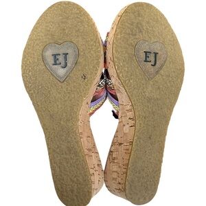 Eric Javitz Sandals Size 7 Cork Wedge Slip On Mulit-Colored Boho Shoes