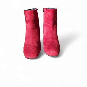Eric Michael Arco Red Suede Chunky Heel Ankle Boots Size 36/5