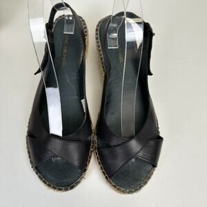 Eric Michael Black Leather Crisscross Espadrilles Slingback Sandals