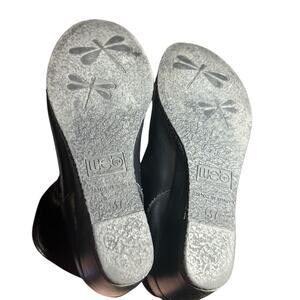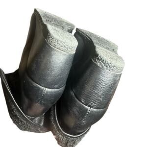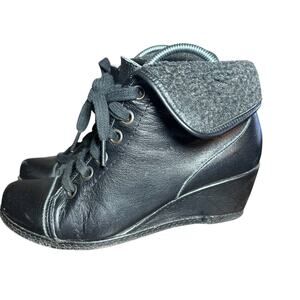 Step out in style with these gently used Eric Michael black wedge leather booties! These size 37 (US 6.5) booties feature a comfortable wedge heel and a cozy fleece lining, perfect for all-day wear.
