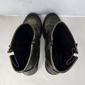 Eric Michael Brennaro Moto Womens Boots Sz 7.5 Dark Gold Metallic Lace Up Detail