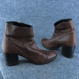 Eric Michael Brown Leather Ankle Boots Women 40 Side Zip Block Heel