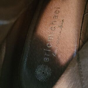 Eric Michael Lena Leather Black Brown Strappy Wedge Ankle Booties 7.5 Spain Chic