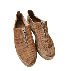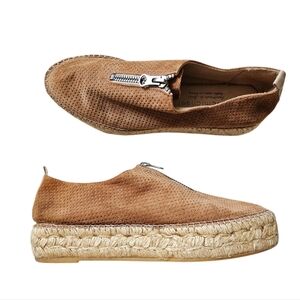 Eric Michael Serena Brown Perforated Suede Platform Espadrille Shoes Size 37