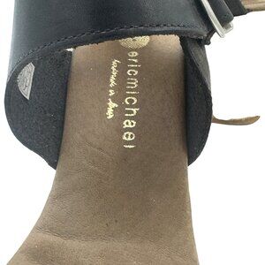 Eric Michael Size 8.5 Black Silver Leather Glitter Espadrille Sandal Shoes