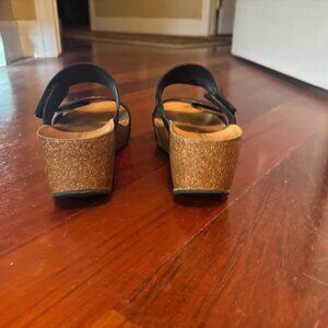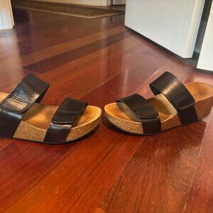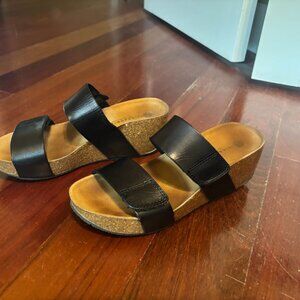Slide sandals. with leather straps, velcro closure, cork platform, Supportive slide keeps you feeling free-spirited and comfortable. Leather upper. Smooth leather linings, Cushioned footbed for added comfort, Lightweight cork platform Durable rubber outsole.