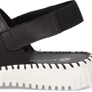 Eric Michael Sola Black Leather slingback women’s sandal white flat sole