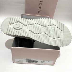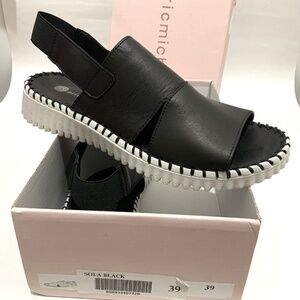 Eric Michael Sola Black Leather slingback women’s sandal white flat sole 39