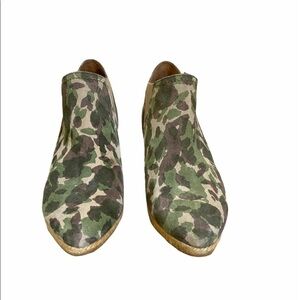 Eric Michael Suede Camo Espadrille Wedge Booties