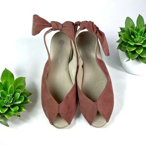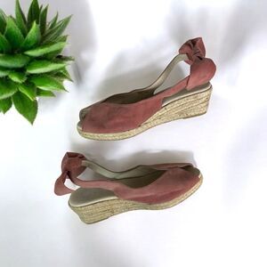 🆕 Eric Michael Suede Peep Toe Slingback Wedge Sandal with Bow