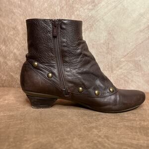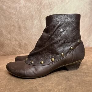Eric Michael Web Brown Leather Studded Ankle Boots Low Heel Zip Up Western Boho