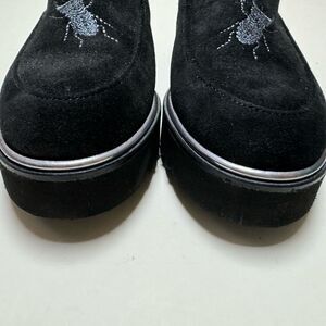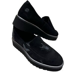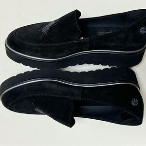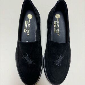 Eric Michael Women’s Black Suede Embroidered Insect Loafers Sz 37/5.5