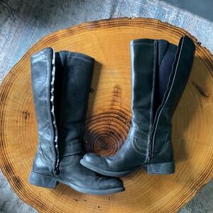 Add some western-inspired design to your everyday wear with the Eric Michael Montana boot. The knee-high boot has a premium leather upper and features adjustable buckle straps to create a classic riding silhouette. Full length zipper allows for easy on-and-off wear and a secure fit. Synthetic outsole delivers long-lasting durability on a variety of surfaces. Still have a lot of life left.