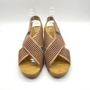 Eric Michael Womens Size 40 EU 9.5 US Taupe Perf Leather Wedges Sandals Shoes