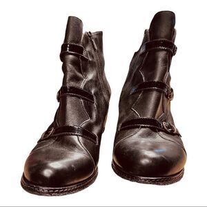 Eric Michael Womens 11.5Lena Black Leather Buckle Strap Wedge Heel Ankle Boot 42