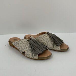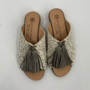 Eric Michael slide espadrille sandal shoe cream silver mule gray tassel 36 5