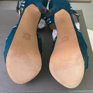 Turquoise suede with silver whipstitching detail