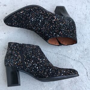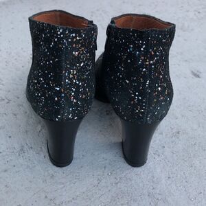 These ankle boots are in almost new condition. Check out the pictures. It’s like a speckled paint. He’ll is more than 2 1/2 inches but not three.