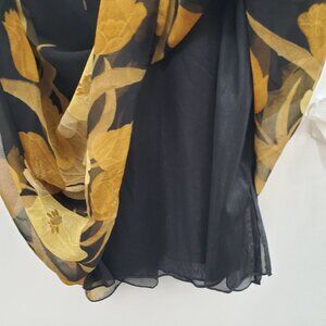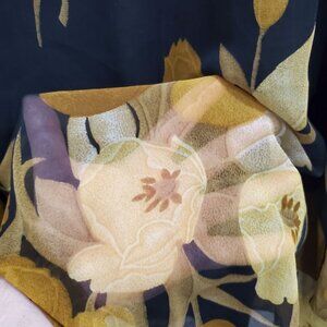 Black base w/ cream & neutral brown tone 70s style flower art print