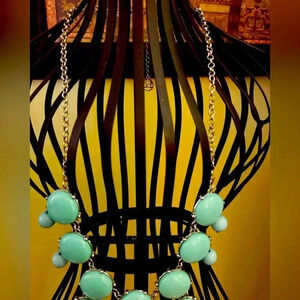 Teal/turquoise statement necklace. 26” chain w/ extender. 5” cluster drop.