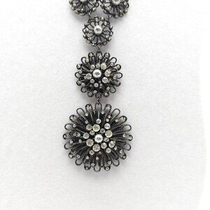 Erica Lyons Black Floral Statement Necklace With Faux Pearls Rhinestones