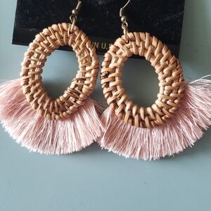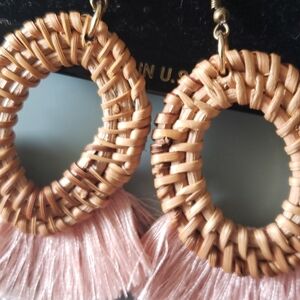 Stylish woven earrings by Erica Lyons featuring a chic gray fringe. Perfect for adding a touch of elegance to any outfit.