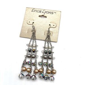 Erica Lyons Chandelier Earrings NWT, with Crystal beads on a silver tone, length is 2 inches , very cute to wear