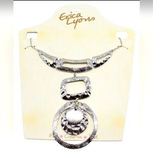 Bold silver statement necklace by Erica Lyons. Features geometric shapes and textured design.