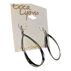 Erica Lyons silvertone twist dangle earrings featuring a teardrop shape with a hook closure.