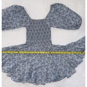 The Erica Wilson Nantucket Fan Flare Prairie Boho Maiden Sundress in size XS is a stylish and versatile piece perfect for various occasions such as travel, weddings, parties, or casual wear. With a beautiful paisley floral pattern and puff sleeves, this blue dress features a square neckline and ruffle accents for a feminine touch. Made from 100% cotton knit fabric, this short-length dress is machine washable and ideal for the warmer seasons of summer, fall, and spring. The slimming and stretchy design features make it a flattering and comfortable choice for women looking for a chic and trendy addition to their wardrobe.