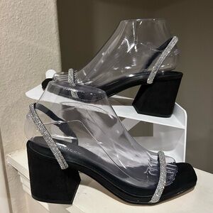 Erijunor Womens Sz 7Bow Ankle Strap Stileto Pump Black Satin Pointed Toe