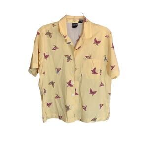 Erika Butterfly Print Button down L Vintage Insects BoHo