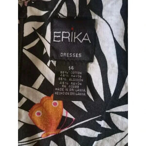 Made from a combination of rayon and cotton, this dress feels light and breezy. The dress length is midi, making it perfect for both formal and informal events. The brand Erika is known for its high-quality clothing, and this dress is no exception. Available in size 14, it's a must-have for any woman's wardrobe.